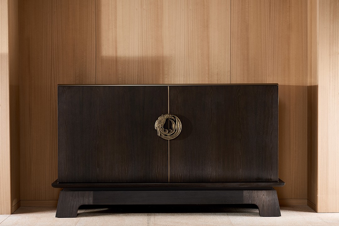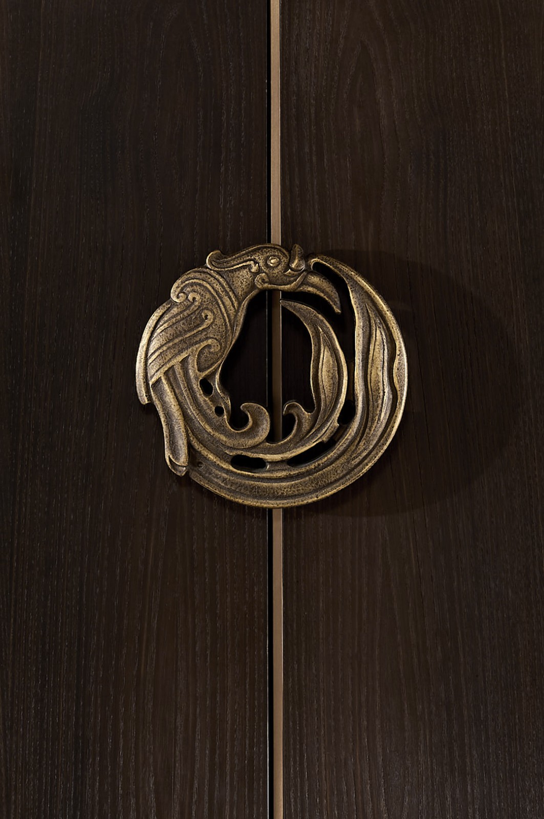 ◎当古铜团凤图腾以金属之姿落于实木,家具便有了穿越时光的东方灵魂