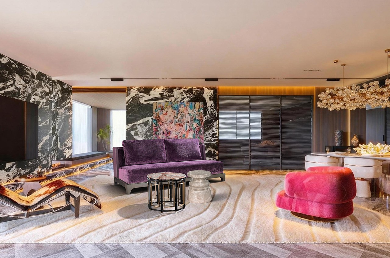 沙发以一道克制的紫调,完成了对东方贵气的美学着陆——它不再依附于繁缛形制,而是沉淀于绒与皮交织的肌理中,随光流动,触手生温。与之契合的,是一道利落的金属线,让锋芒收敛为支撑的智慧,成就一种不张扬的底气。