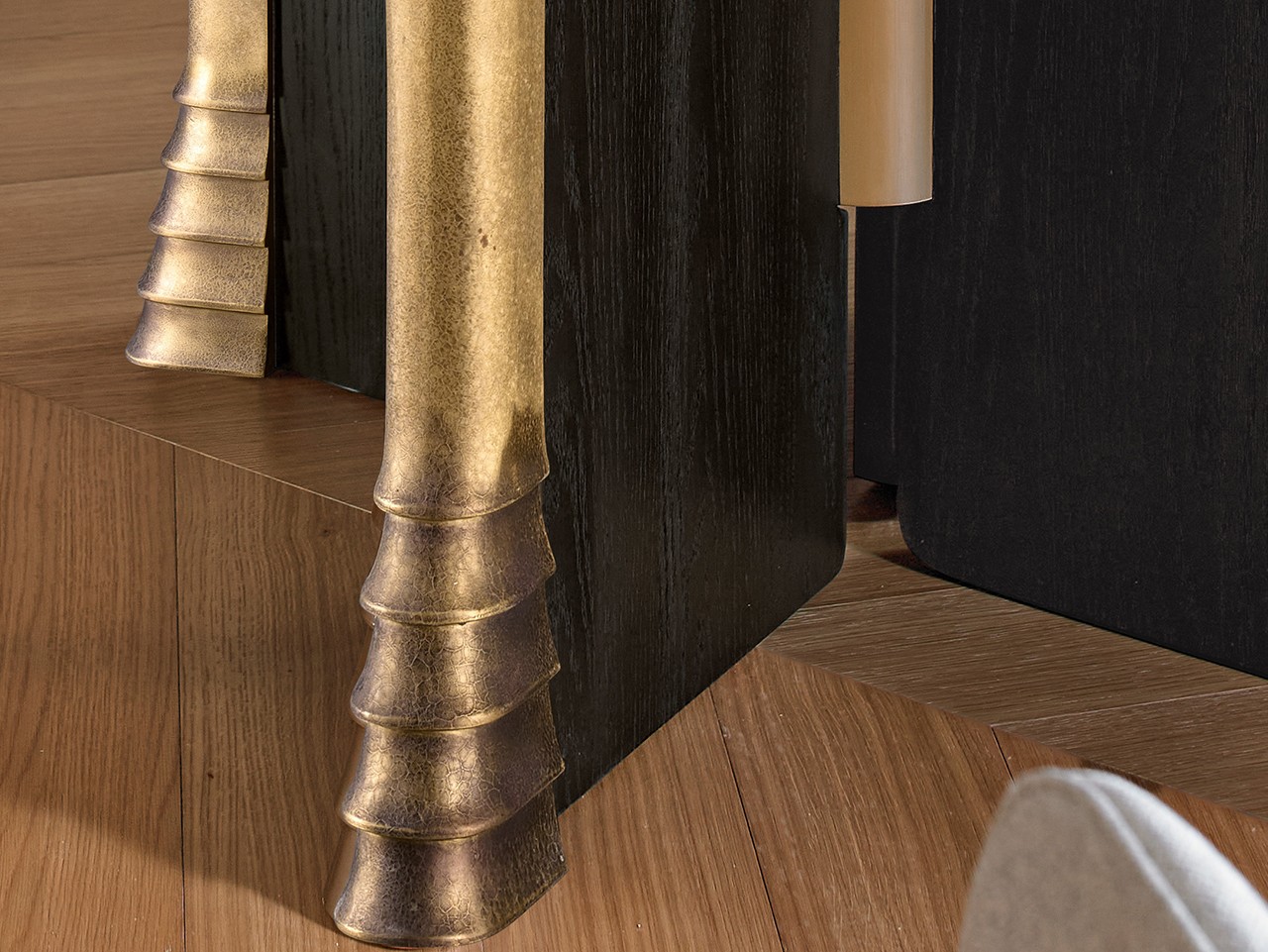 四组五层相叠,步步高升,步步进阶的金色蹄形装饰,工艺精密且富有岁月肌理。