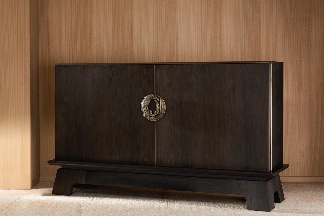 ◎当古铜团凤图腾以金属之姿落于实木,家具便有了穿越时光的东方灵魂