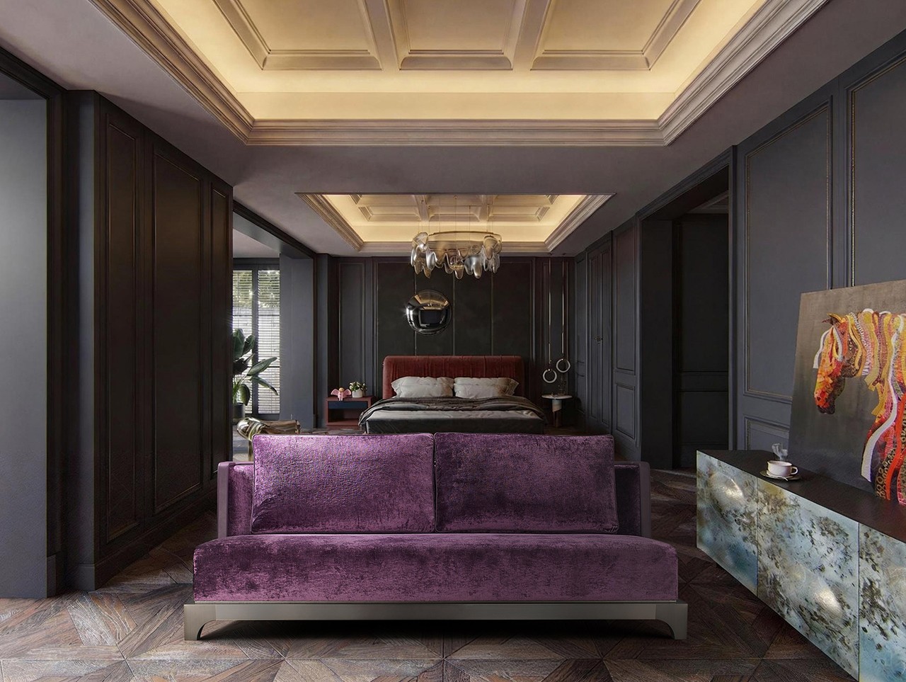 沙发以一道克制的紫调,完成了对东方贵气的美学着陆——它不再依附于繁缛形制,而是沉淀于绒与皮交织的肌理中,随光流动,触手生温。与之契合的,是一道利落的金属线,让锋芒收敛为支撑的智慧,成就一种不张扬的底气。